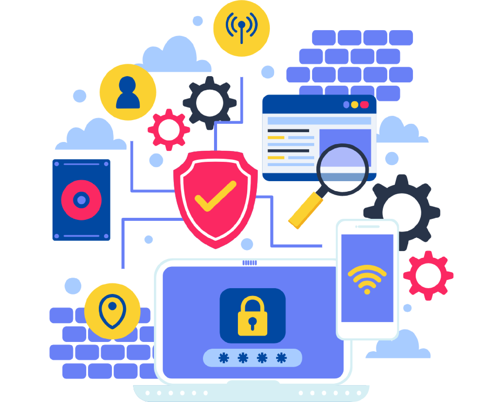 - Implementarea și monitorizarea soluțiilor de securitate, inclusiv firewall-uri, programe antivirus și soluții de detecție a intruziunilor.